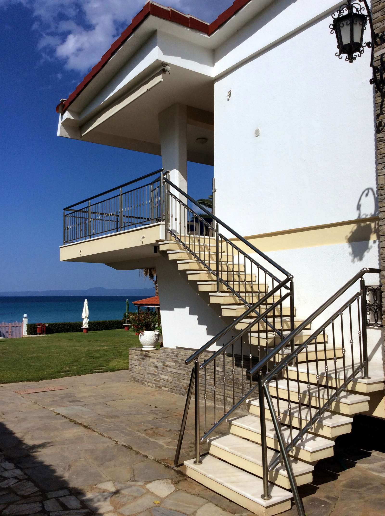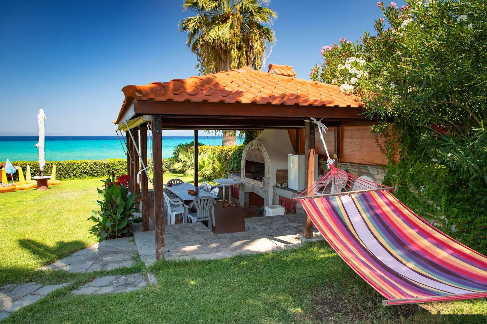 Located between Polychrono and Chanioti in the Kassandra Peninsula or Halkidiki, Villa Alta Vista is the upper level of our charming 185-square-meter beachfront villa. The garden gate leads to a beautiful beach with sunbeds and umbrellas, offering sun-soaked relaxation and access to the turquoise Greek sea.